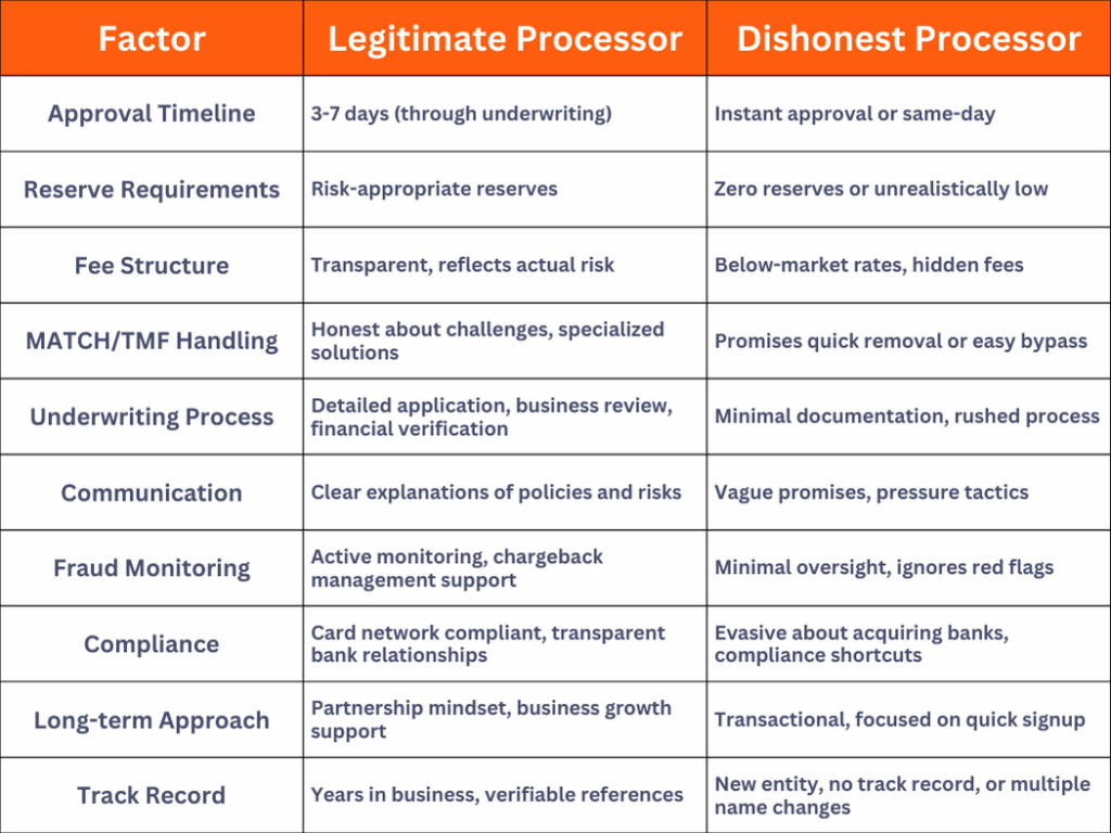 Comparison: Legitimate vs. Dishonest High-Risk Processors